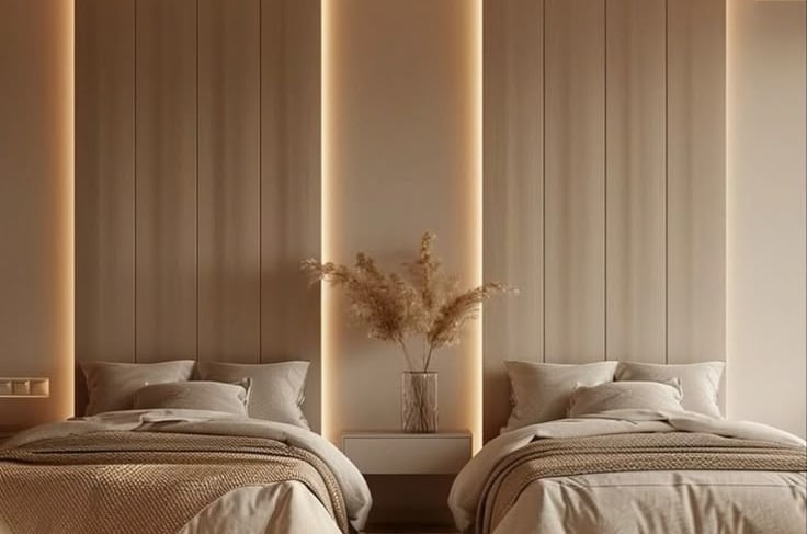 تصاميم عصرية بتجمع بين دفء الخشب وأناقة التنجيد. بنركز على "ظهر السرير" (Headboard) والإضاءة المخفية اللي بتعطي طابع القصور.